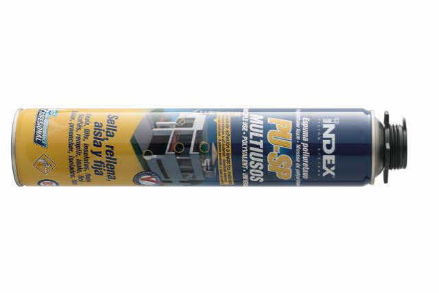 Chevilles chimiques. Mousse de polyuréthane Mousse de polyuréthane multiusages. Application avec pistolet (750 ml. 12 uds.) Utilisation recommandée sur: béton, béton creuse, béton cellulaire, brique pleine, tuile, brique creuse, pierre... entre autres. (Ref: PUSP750, EAN: 8423533818188, INDEX Fixing Systems)