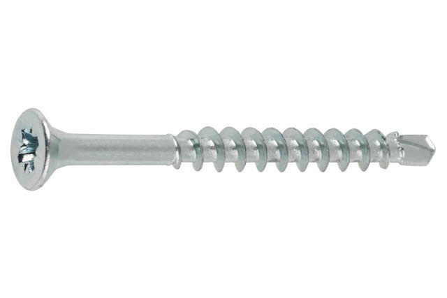 - Tête fraisée à 90° et pointe foreuse pour une insertion facile.