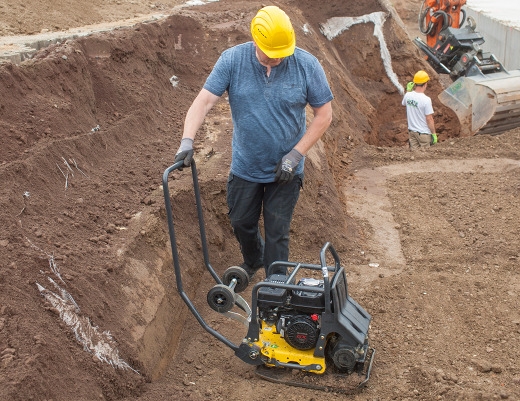 Compactage des sols et d'enrobés et pavage. Travaux de réfection de routes et chemins, canalisations et conduites, tranchées, horticulture et paysages.