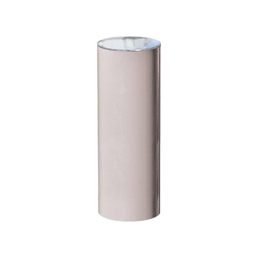 Avec un diamètre de 220 mm et une hauteur hors sol de 600 mm, cette borne dispose d'une finition en acier peint sur zinc pour une durabilité accrue. Fabriquée en acier inoxydable de type 316, le pommeau en inox brossé ajoute une touche esthétique tout en résistant aux conditions extérieures. Pour l'option de diamètre plus petit, la hauteur hors sol est de 700 mm pour un tube de 160 mm. Sa couleur RAL 7044 confère à cette borne un aspect moderne et harmonieux dans tout environnement.