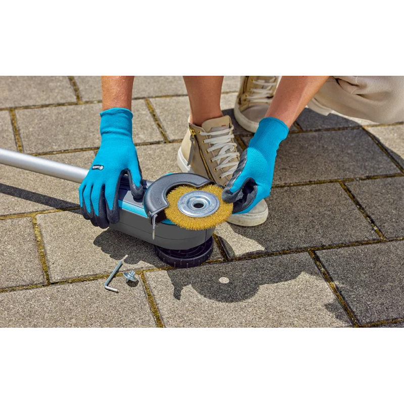 L'accessoire est conçu pour un remplacement rapide et facile, ce qui permet de continuer le travail sans interruption. Grâce à sa compatibilité avec le nettoyeur de joints EasyWeed 18V POWER FOR ALL, la brosse métallique rend le désherbage simple et efficace, éliminant les mauvaises herbes sans effort. Ce duo intelligent entre le nettoyeur de joints sur batterie et la brosse circulaire en acier transforme le nettoyage en une tâche rapide et sans contrainte, rendant le désherbage fastidieux une chose du passé.