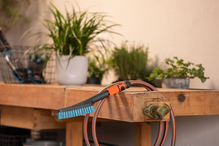 En ajoutant les bâtonnets de savon GARDENA (réf. 18852), le nettoyage atteint un niveau supérieur. Ces bâtonnets, insérés directement dans la brosse, se mélangent automatiquement à l’eau pour une application homogène et efficace. Idéal pour les surfaces nécessitant un nettoyage approfondi.