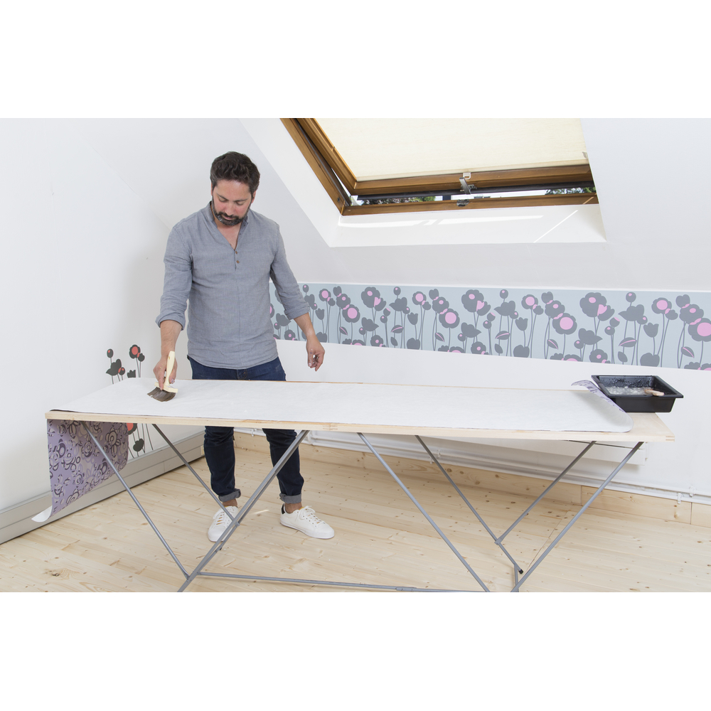 Son fonctionnement est simple : il suffit de plonger la brosse dans la colle, puis de l'appliquer sur le papier peint ou la surface à encoller. Son design rectangulaire facilite l'atteinte des coins et des bords, assurant ainsi un résultat impeccable. Pour un usage optimal, il est recommandé de nettoyer la brosse après chaque utilisation afin de préserver la qualité de ses fibres.
