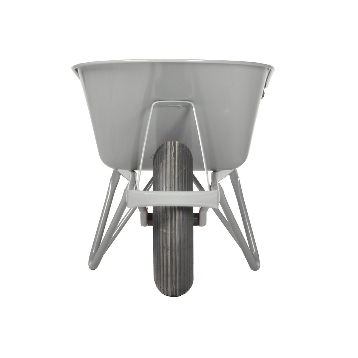 La brouette est revêtue d’une peinture époxy gris durable sans solvants, ce qui réduit son impact environnemental en limitant les émissions nocives.