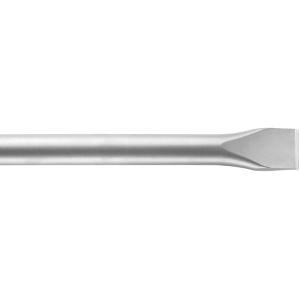 Le burin plat mesure 410 mm de long pour une largeur de 35 mm et un emmanchement de 30 mm. Ces dimensions permettent une bonne puissance et précision lors des travaux de démolition sur béton et maçonnerie.