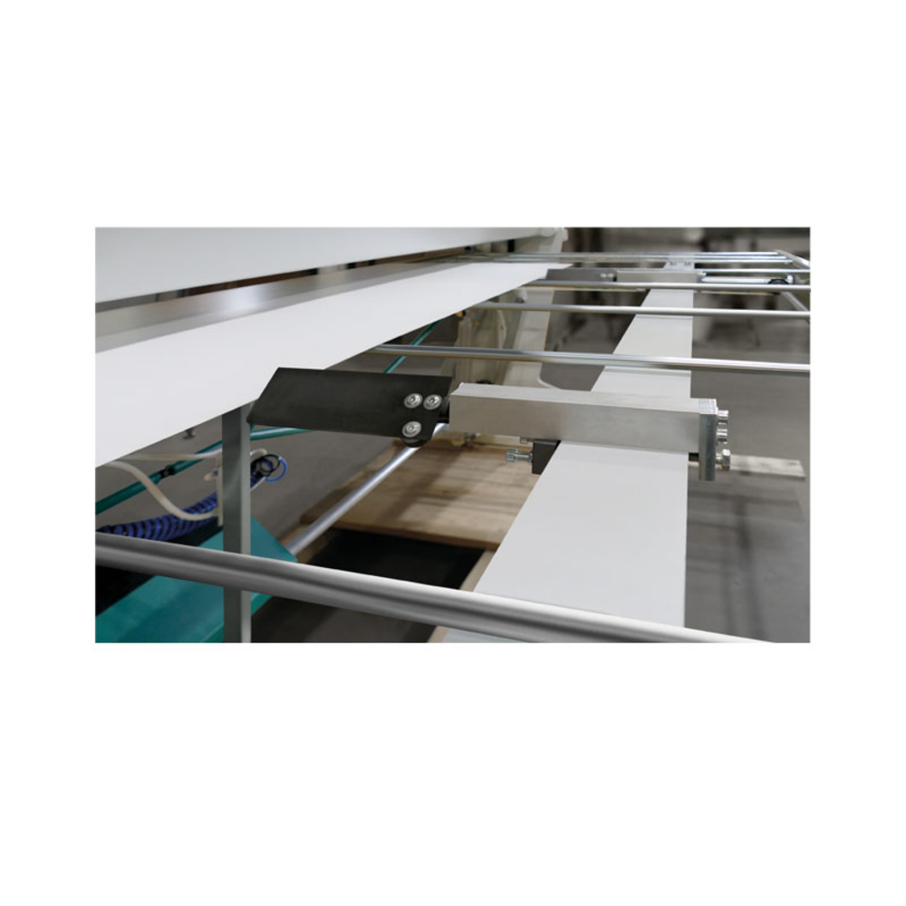 Découvrez la butée arrière à courroie, idéale pour la plieuse PVX2040, offrant une course de 750 mm.
