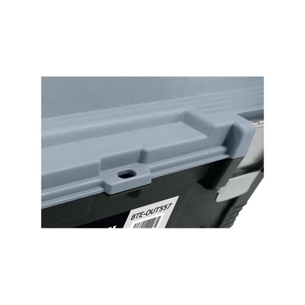 Fabriquée en polypropylène haute résistance, cette caisse présente des angles renforcés anti-chocs. Ses dimensions hors-tout sont de 557 x 283 x 245 mm, et les dimensions intérieures avec bac amovible sont de 500 x 230 x 120 mm. Les fermoirs métalliques extra larges sont anti-corrosion, et les longues charnières en polypropylène avec un axe en fil métal ajoutent à sa durabilité. Sa charge maximale est de 25 kg, rendant cette caisse aussi robuste que fonctionnelle.