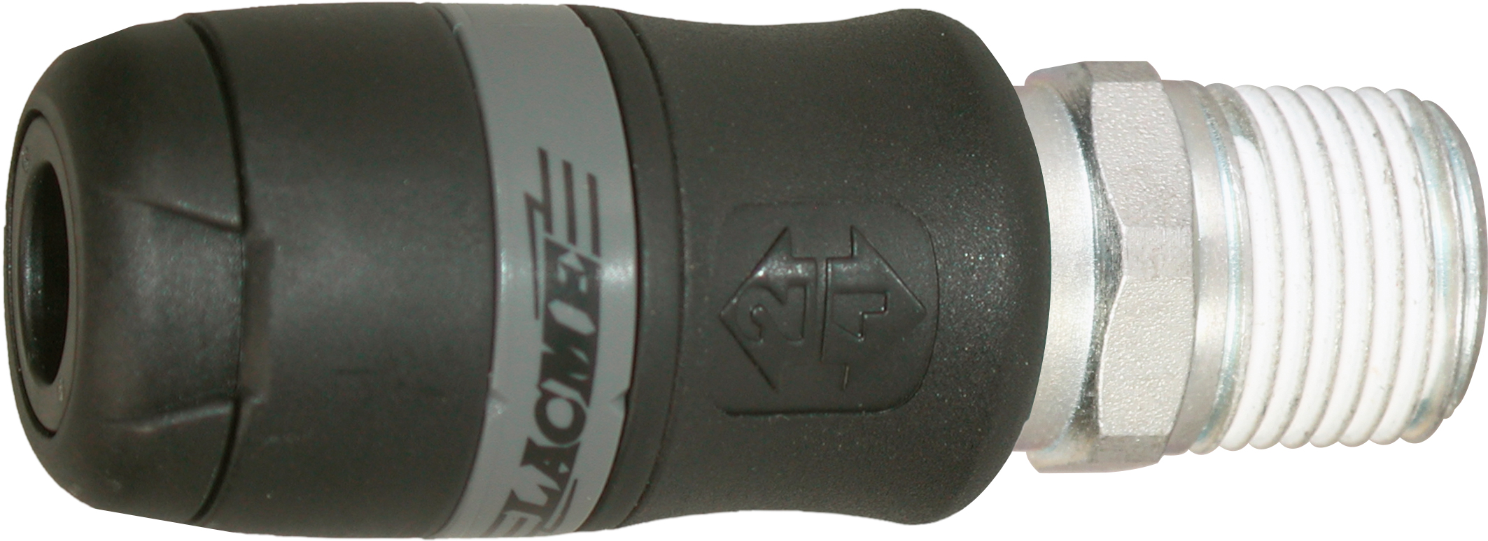 Découvrez le coupleur raccord rapide de sécurité, idéal pour vos installations. Ce modèle est conforme à la norme ISO 6150B, garantissant un passage de Ø 5,5 mm pour un débit optimal. Un raccord automatique à bague, doté d'un système d'accrochage à billes en Inox, assure une connexion sécurisée et durable.