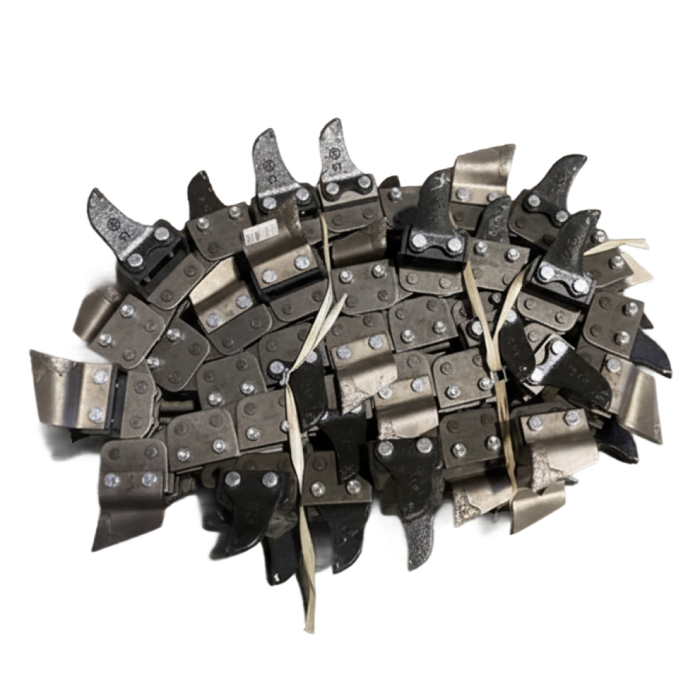 La chaîne bénéficie d’une conception robuste qui minimise le rebroussement des maillons, garantissant une progression stable et efficace, ainsi qu’une transmission optimisée de la puissance de la machine.