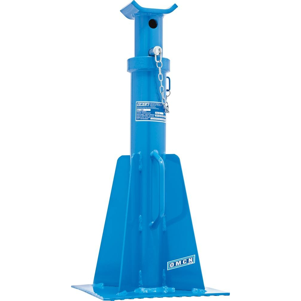 Les caractéristiques techniques de cette chandelle incluent une capacité de charge maximale de 12 tonnes, avec une structure robuste et résistante. Sa conception avec une embase soudée assure une stabilité et une durabilité accrues, même dans des conditions d'utilisation intensive. Cette chandelle est ainsi idéale pour un usage professionnel sur des chantiers ou dans un atelier.