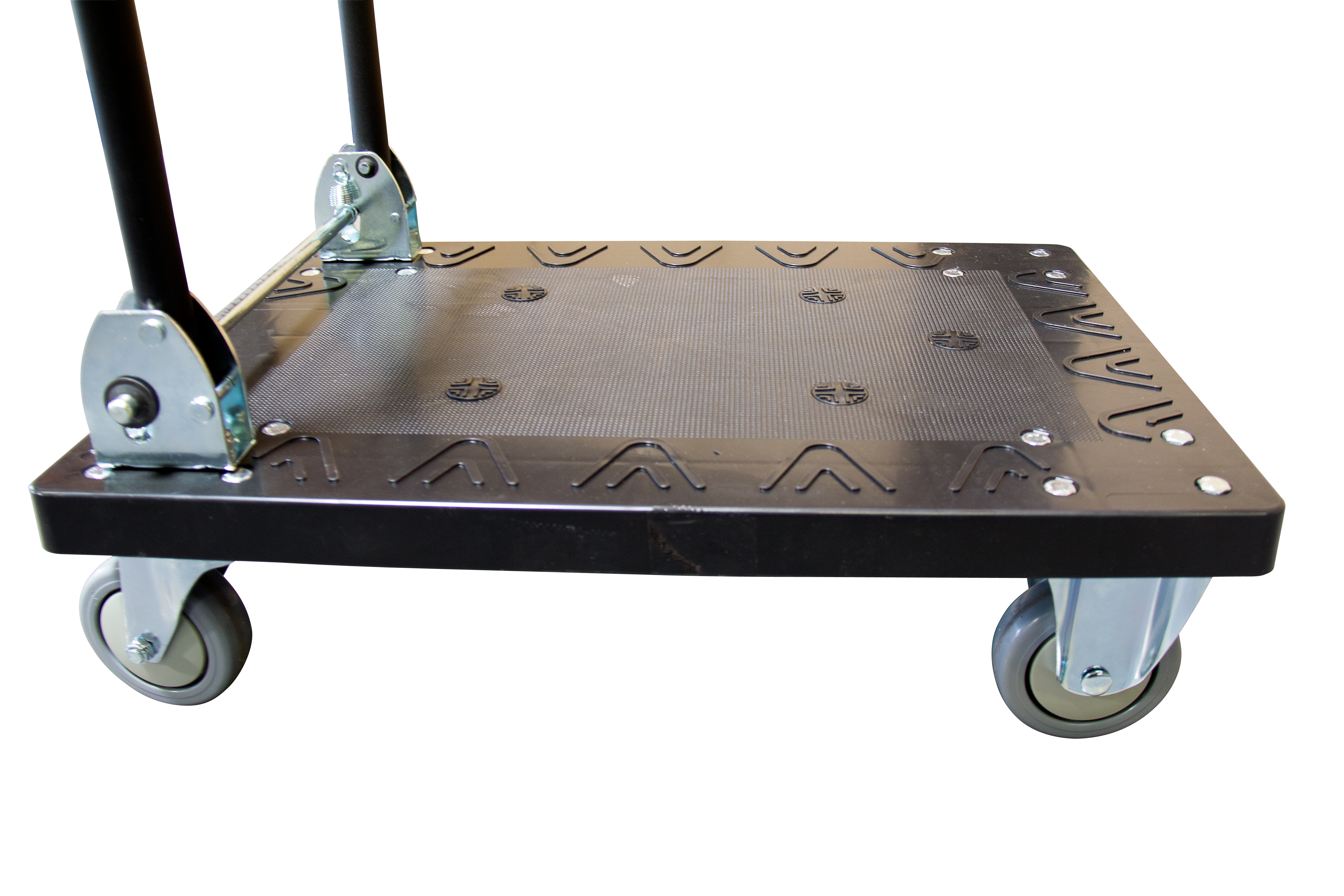 Chariot compact et léger, idéal pour les milieux humides ou les utilisations extérieures. Le plateau est en polypropylène strié antidérapant, robuste, durable, hygiénique et facile à nettoyer. La poignée est en peinture époxy noire, avec une hauteur conforme aux préconisations CRAM pour assurer une bonne ergonomie.