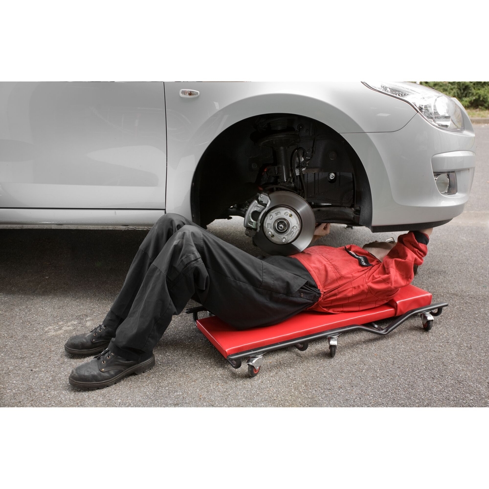 Ce chariot de visite est équipé d'un coussin en vinyle résistant aux hydrocarbures et rembourré en mousse haute densité, garantissant un confort d'utilisation même lors de longues visites. Sa conception assure une posture agréable, évitant ainsi l'inconfort pendant les périodes prolongées.