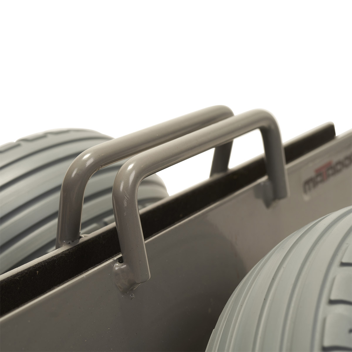 Le chariot est revêtu d’une peinture poudre de couleur grise caractéristique de Matador, garantissant une bonne résistance à l’usure. L’intérieur de la pince est doublé de feutre afin de protéger les matériaux transportés contre les dommages.
