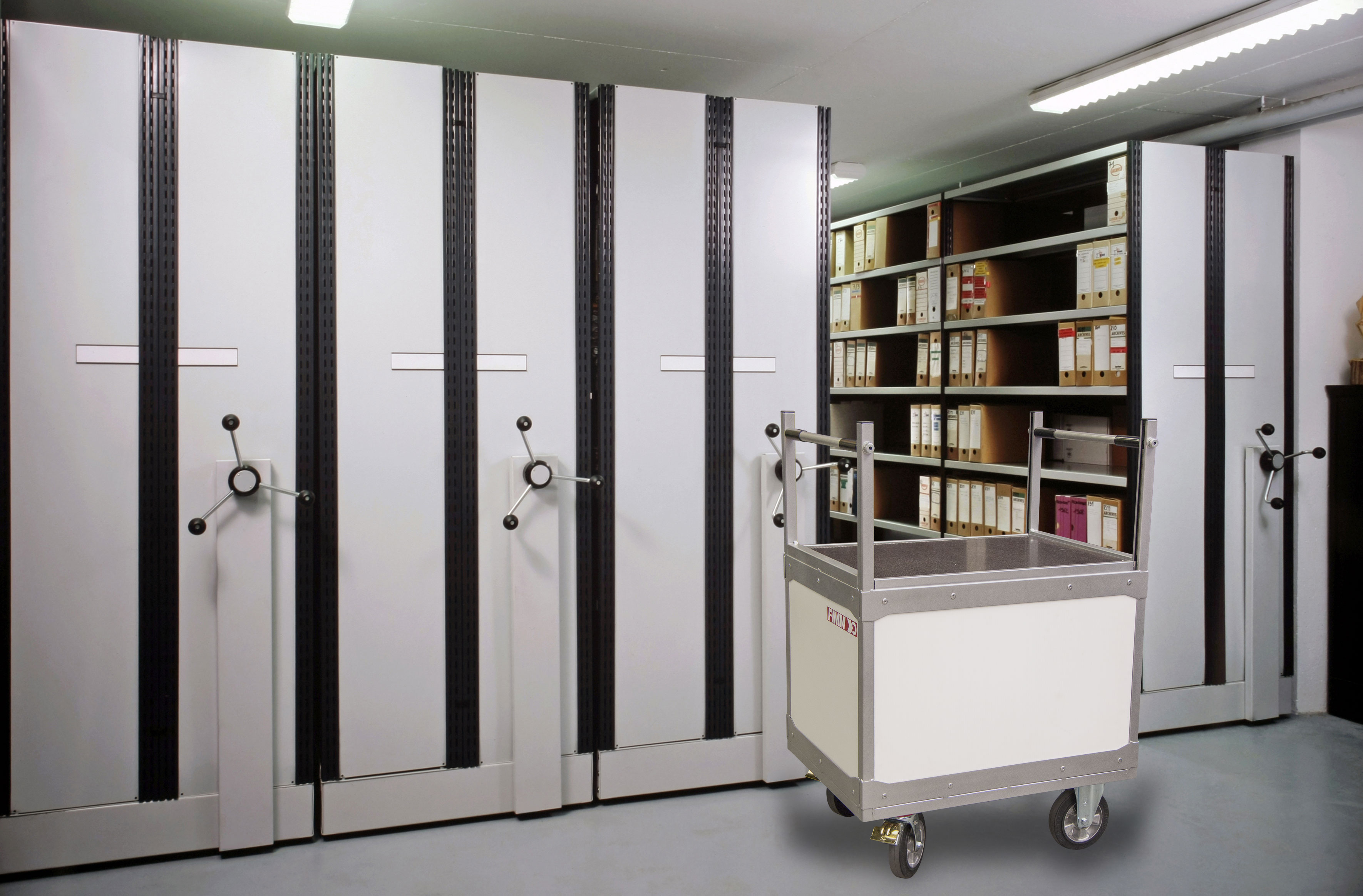 Le chariot est équipé de quatre roues en TPE de 200 mm de diamètre, dont deux fixes et deux pivotantes avec frein à bandage, ce qui limite l’effort au démarrage, assure une excellente manœuvrabilité et un roulage silencieux.