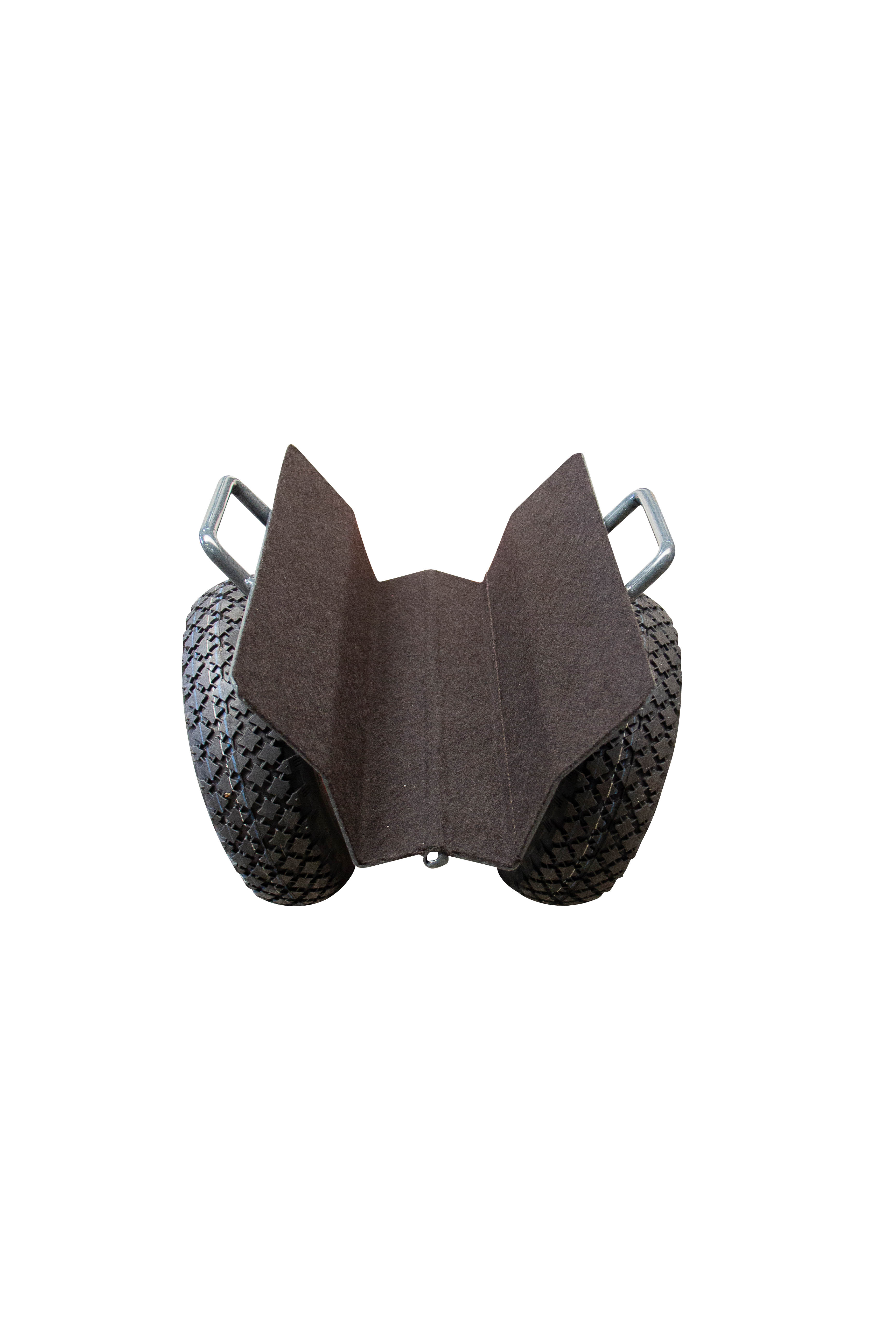 Le chariot dispose d’une poignée de préhension facilitant son transport. Les roues sont pneumatiques, offrant une meilleure absorption des chocs et une bonne maniabilité sur différents types de sols.