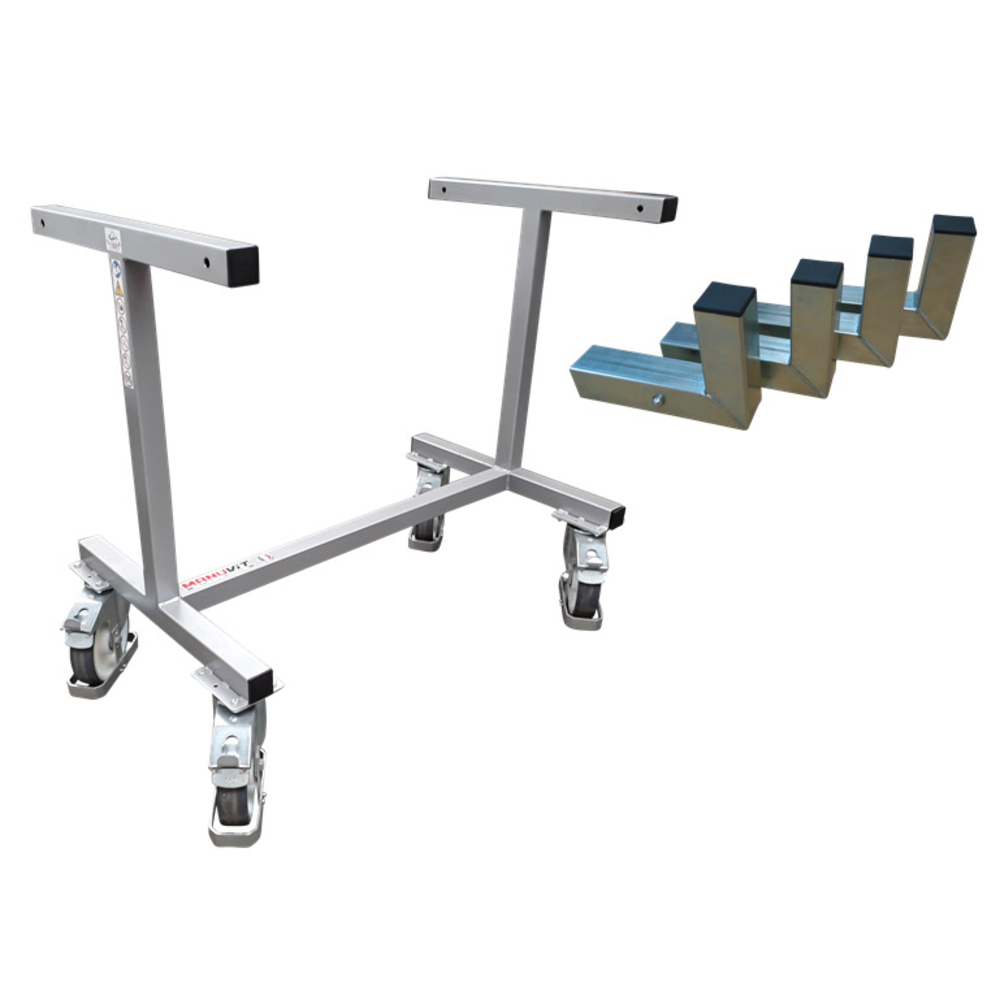 Le modèle fixe est doté de 4 ranchers fixes qui limitent le risque de chute des profilés au sol et permettent de transporter un volume plus important de matériaux en une seule fois. Le chariot est livré prêt à l'emploi avec ces ranchers inclus.