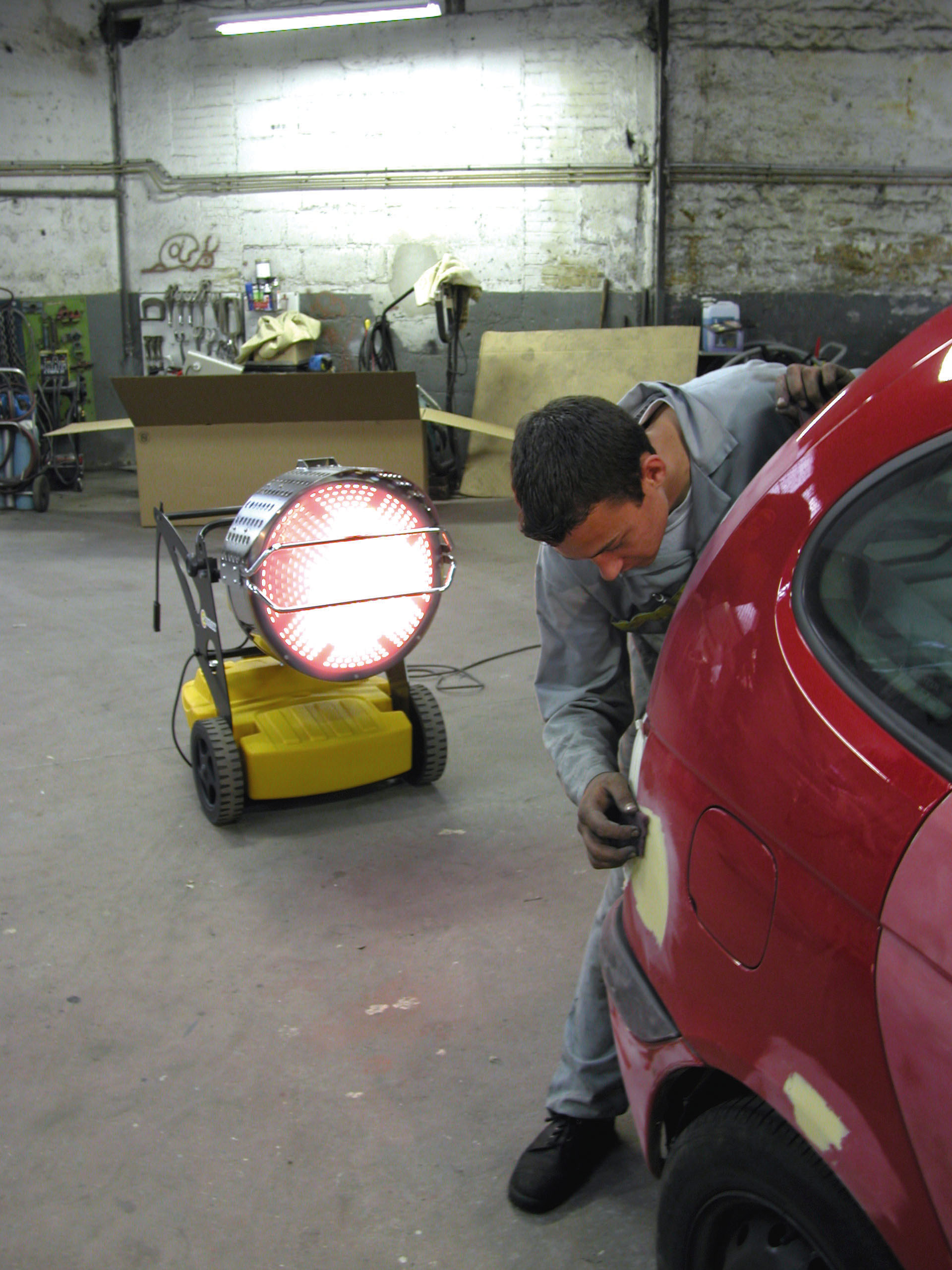 Chauffages radiants mobiles au fuel à combustion directe.