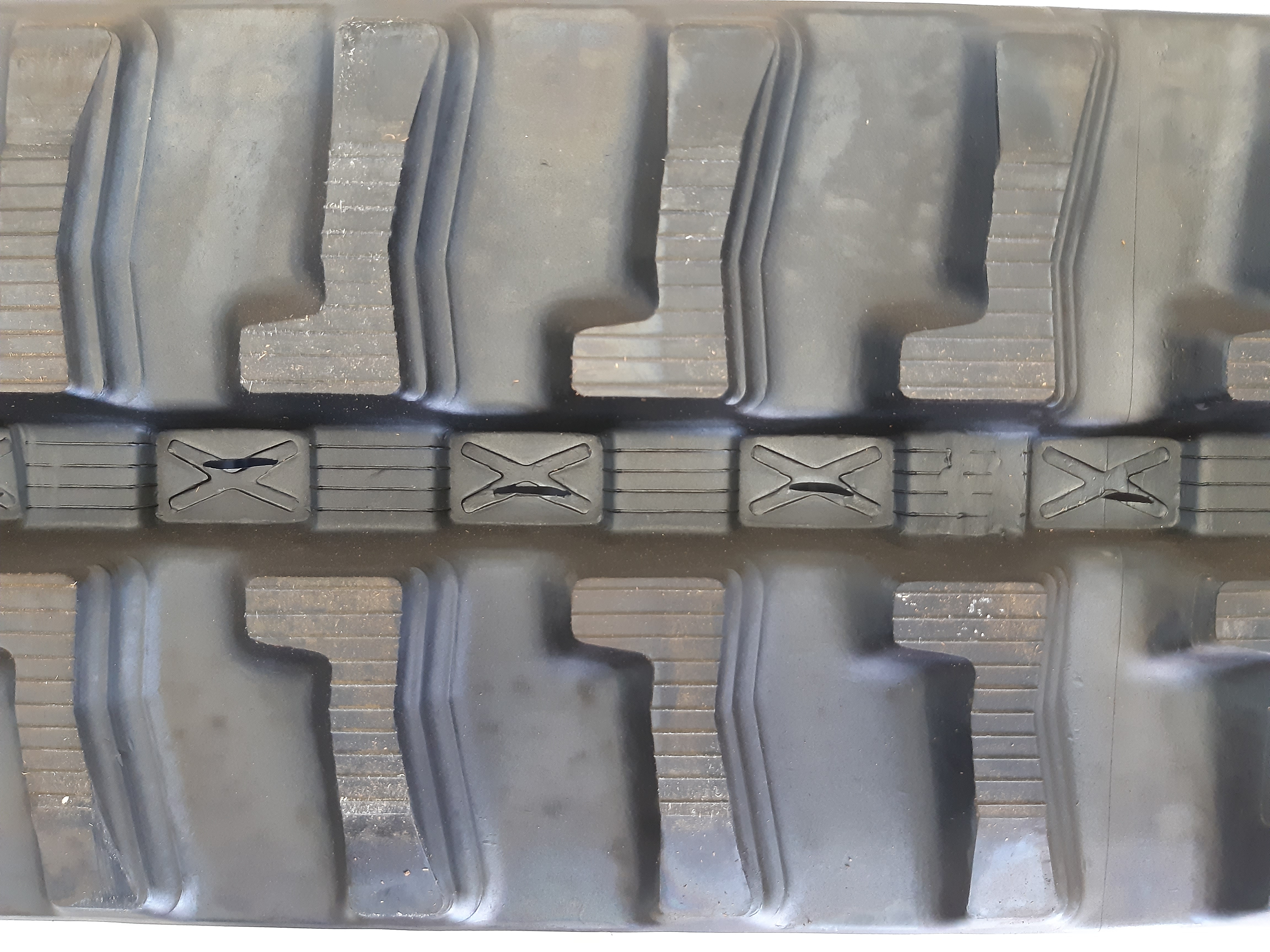 La technologie « Curbshield » protège les bords des crampons contre les coupures, notamment celles causées par les fentes de trottoir. Elle évite d’endommager les câbles et assure une bonne adhésion entre les barres métalliques et le caoutchouc, renforçant ainsi la résistance globale de la chenille aux agressions mécaniques.