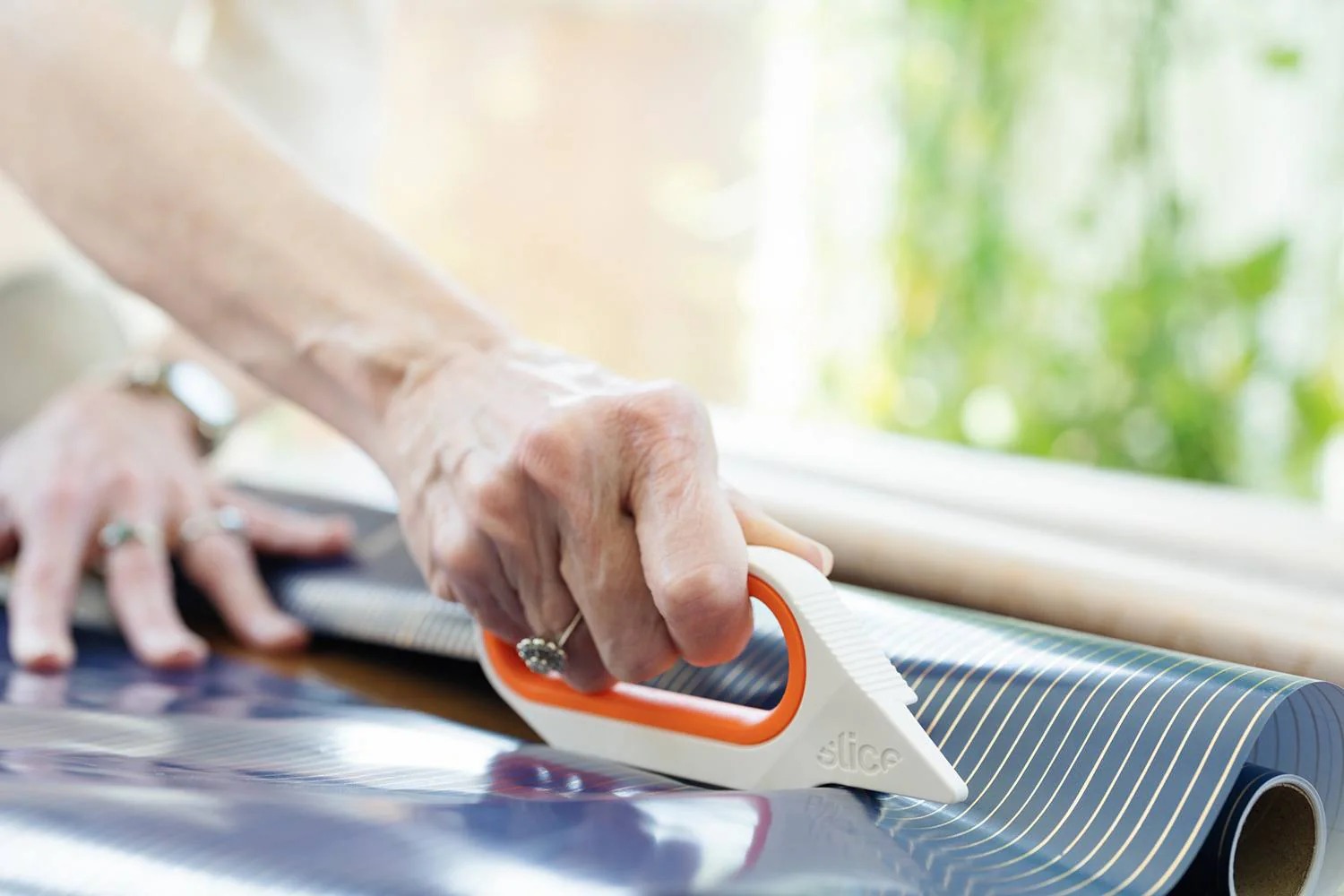 Les ciseaux rotatifs Slice® 10598 sont un outil sûr et sans lame pour effectuer des coupes longues et droites sur des matériaux rigides et minces. Que vous coupiez des feuilles simples sur de gros rouleaux de papier journal ou que vous coupiez du papier cadeau et du cellophane pour la vente au détail, vous apprécierez cette alternative robuste et ergonomique aux ciseaux traditionnels. Conçus pour les droitiers ou les gauchers, les ciseaux 10598 sont dotés d'une doublure douce au toucher et d'un repose pouce strié pour une prise ferme mais confortable.