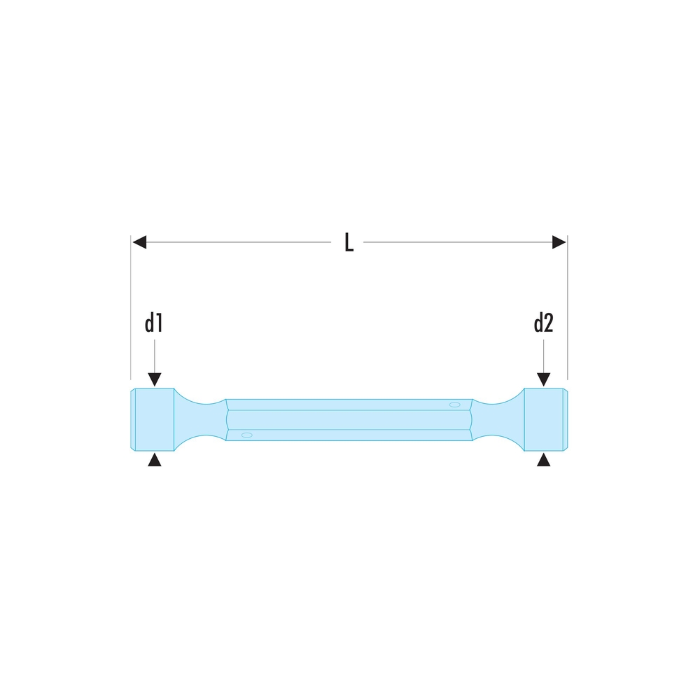 Cette clé à béquilles, de dimensions 18 x 19 mm, facilite l'ouverture complète, vous permettant ainsi le passage de tiges filetées très longues. Son corps hexagonal est conçu pour un serrage optimal avec une clé, garantissant une prise en main efficace. Avec son trou de passage, elle s'utilise facilement avec des broches spécifiques, telles que 160A.1 pour des dimensions de 6x7 à 21x23 mm, et 160A.2 pour des dimensions de 24x26 à 30x32 mm.