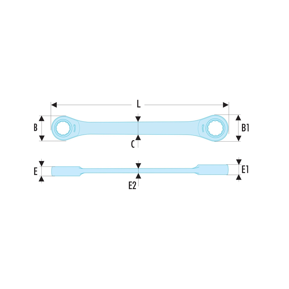 Cette clé à cliquet est conçue pour un usage facile et rapide. Son mécanisme à cliquet permet une inversion en retournant simplement la clé, ce qui facilite son utilisation dans des espaces restreints. Grâce à son angle de reprise de 5°, elle s'adapte à de nombreuses dimensions, excluant toutefois les tailles de 6 mm (7,5°) ainsi que 7, 8 et 9 mm (7°).