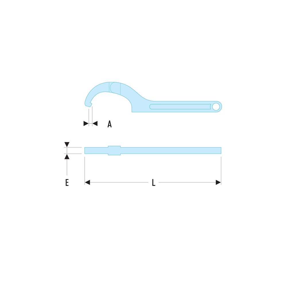 Conçue pour s'adapter facilement à différentes tailles d'ergots, cette clé possède un système articulé permettant une ouverture de 50 à 80 mm. Grâce à sa charnière équipée d'une rondelle élastique, son utilisation est fluide et fiable. Idéale pour les travaux nécessitant précision et efficacité, elle remplace plusieurs clés fixes classiques.