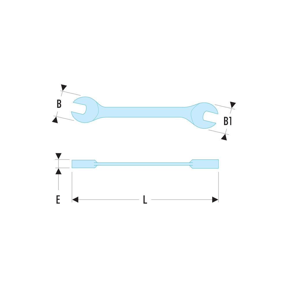La clé à fourche est disponible dans une taille de 4x5 mm et couvre une large plage de dimensions métriques allant de 3,2 à 13 mm. Chaque clé présente également un double dimensionnement, ce qui signifie qu'elle combine deux tailles en un seul outil, garantissant polyvalence et praticité. Ce modèle est idéal pour les professionnels recherchant précision et efficacité dans des applications variées.
