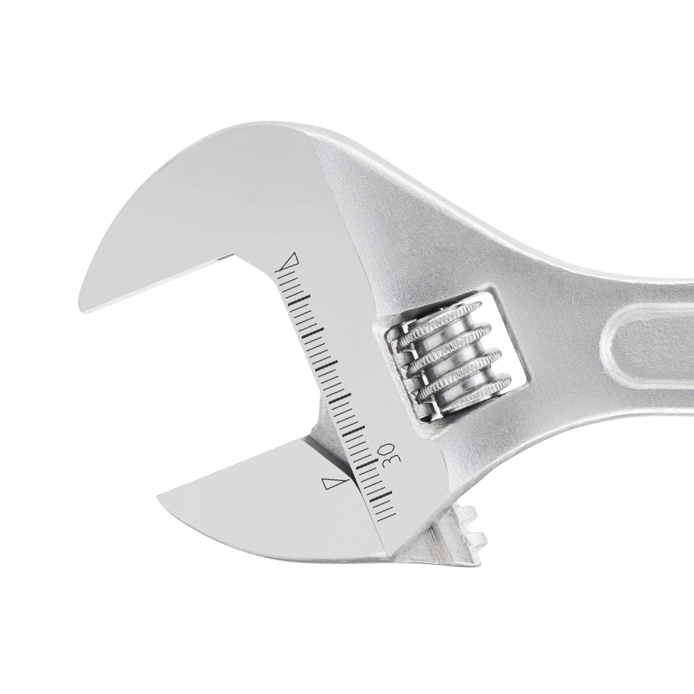 Fabriquée en acier chrome vanadium de haute qualité, cette clé forge une durabilité optimale. La mollette de réglage crantée permet d'ajuster facilement l'outil à vos besoins, tandis que les mâchoires inclinées à 15° garantissent une meilleure approche des vis. Elle est également marquée en inches et cm par gravure laser pour un ajustement précis. Disponible en quatre longueurs pour s’adapter à toutes vos exigences : 150 mm, 200 mm, 250 mm et 300 mm.