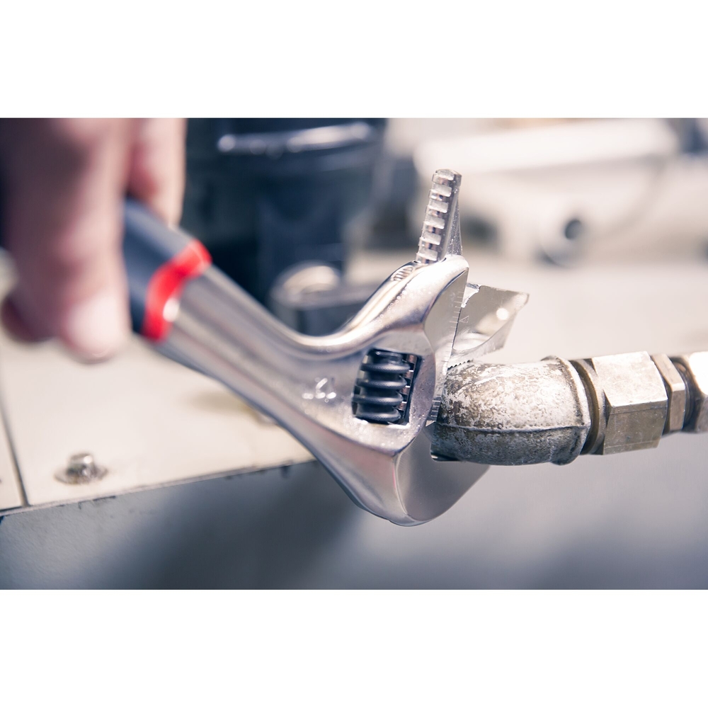 Cette clé à molette fonctionne grâce à un système de réglage rapide qui permet un serrage facile et instantané de la mâchoire sur l'écrou grâce à un simple bouton. Son profil de mâchoire mince garantit une accessibilité optimale, même dans des espaces restreints. Grâce à son ouverture extra-large, elle offre une polyvalence inégalée, permettant de travailler sur de nombreuses dimensions avec un seul outil.