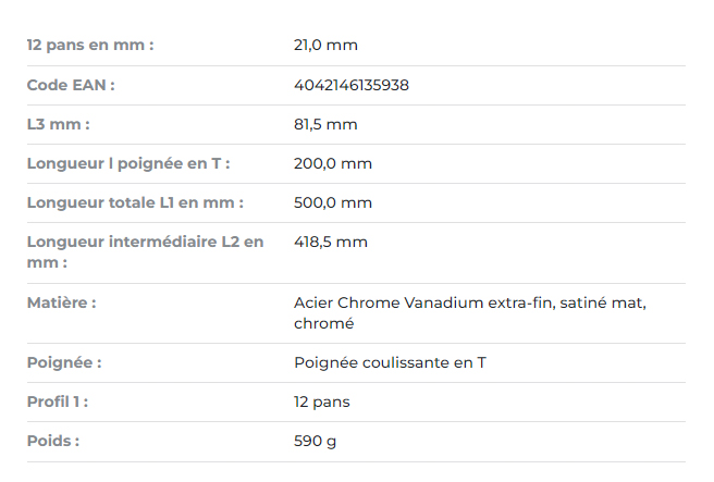 - Fabriqué en Chrome Vanadium, offrant durabilité et performance