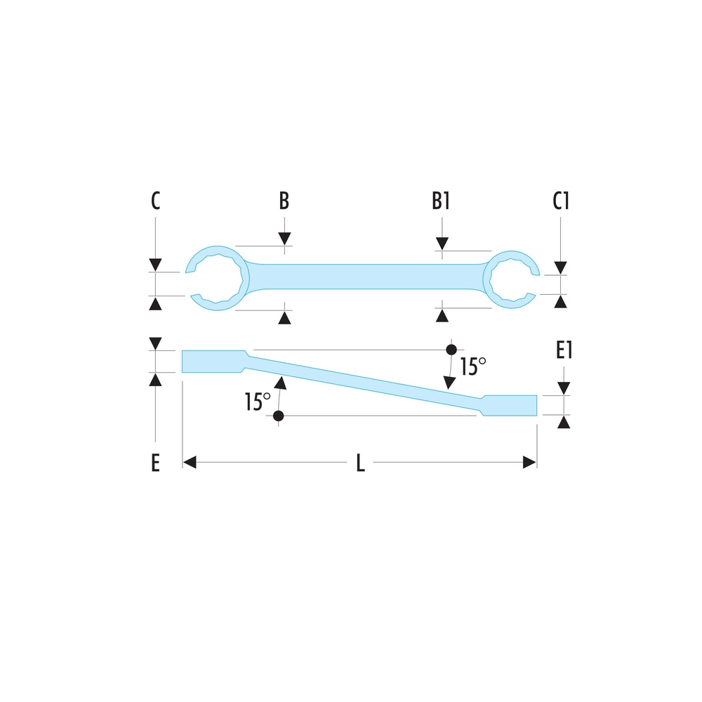 Conçue pour saisir les côtés des écrous, cette clé évite d'endommager le raccord lors du serrage ou du desserrage. Avec son décalage de 15°, elle facilite l'accès dans des espaces restreints et permet une meilleure maniabilité, même dans des positions difficiles.