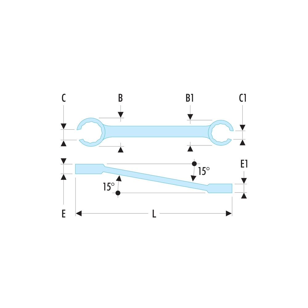 Conçue pour saisir les côtés de l'écrou plutôt que les coins, cette clé évite d'endommager l'écrou et le raccord lors du serrage ou du desserrage. Avec son décalage de 15°, elle offre une maniabilité améliorée pour accéder aux zones difficiles.