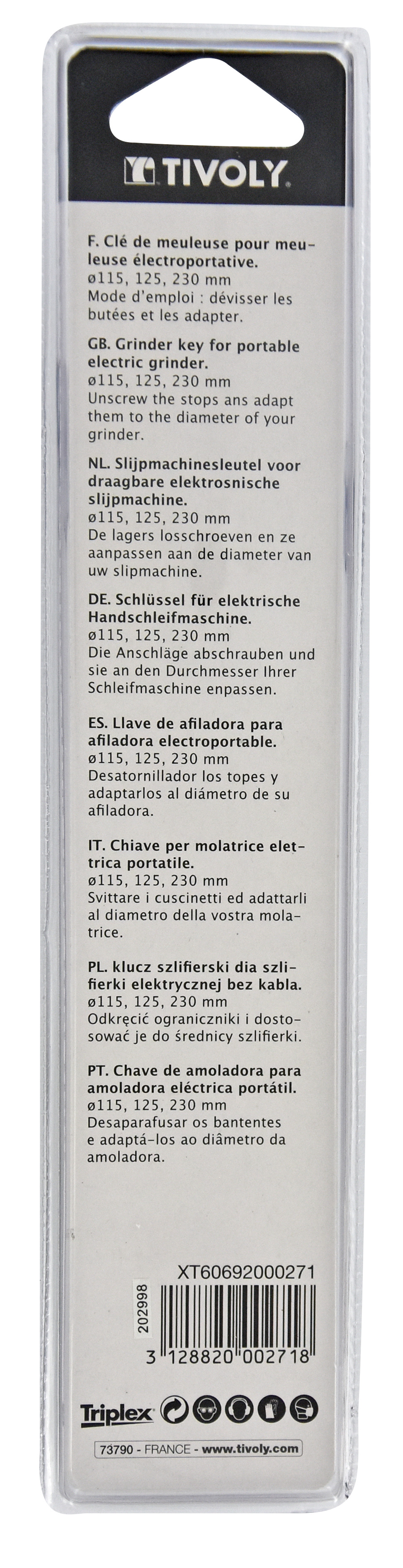 Découvrez Clé de meuleuse universelle TIVOLY - XT60692000271 disponible à l'achat