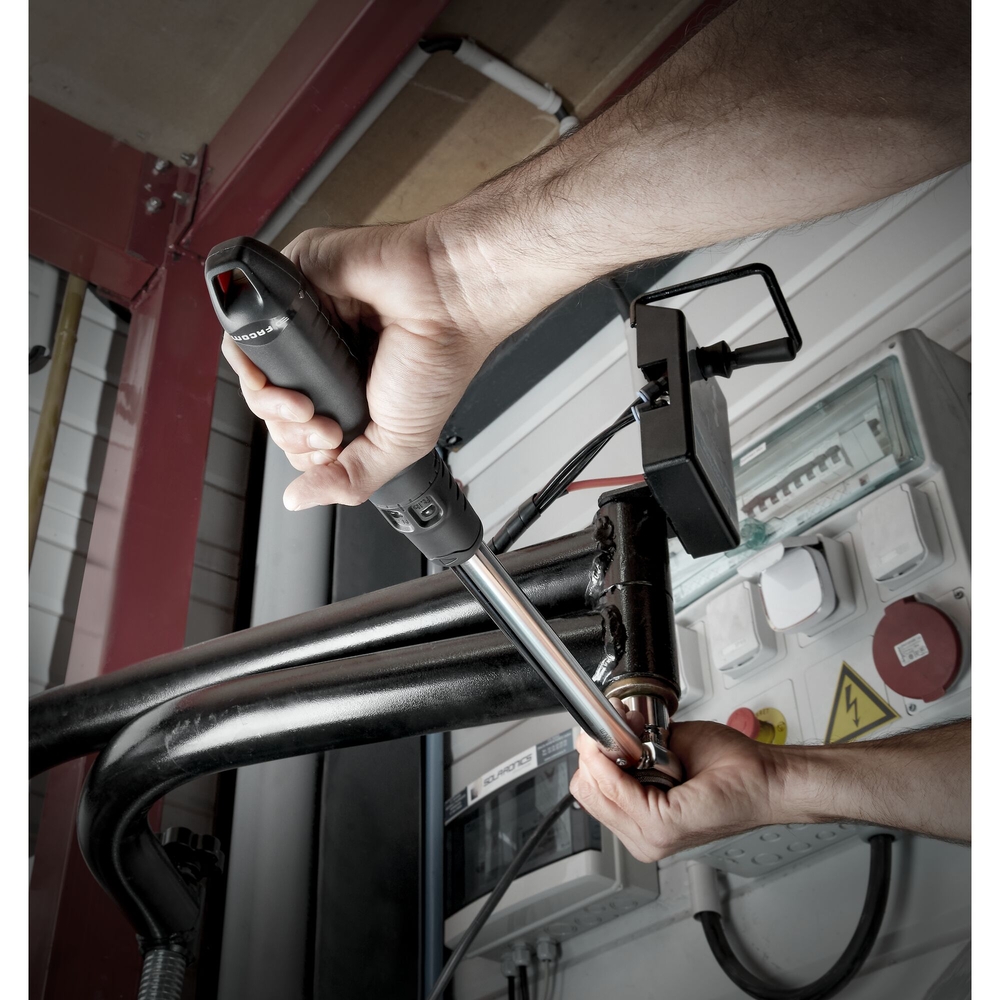 Cette clé à réarmement manuel est équipée d'un cliquet amovible et d’une capacité de réglage de 60 à 340 Nm. Elle assure une lecture claire du couple réglé, tout en réduisant le risque d'erreur de lecture. Son usage polyvalent est facilité par la double échelle, affichant les valeurs en N.m et Ft.Lbs, ce qui la rend adaptée à des applications en unités différentes. Pour un réglage rapide, son filetage à double démarrage permet de gagner du temps, avec un ajustement deux fois plus rapide.