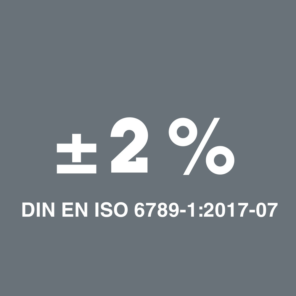 La précision est de ±2 % selon la DIN EN ISO 6789-1:2017-07