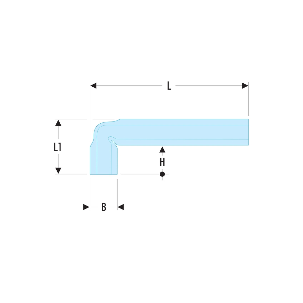 Cette clé coudée est spécialement conçue pour faciliter l'accès à des espaces restreints et pour travailler sur de longues tiges filetées. Elle est dotée d'un trou de passage qui permet l'utilisation de broches, notamment les modèles 160A.1 pour les dimensions allant de 4 à 23 mm et 160A.2 pour celles de 24 à 32 mm.