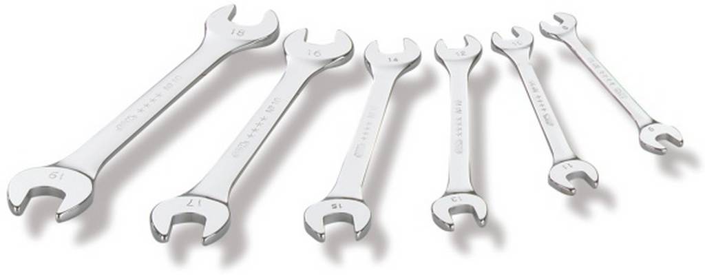 Jeu de 6 clés à fourche forgées en acier au chrome vanadium.