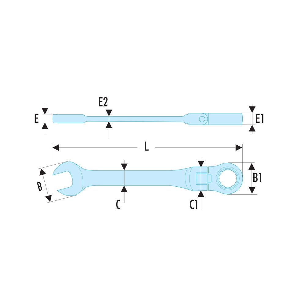 Ce modèle se distingue par un décalage de 15°, offrant une maniabilité supérieure qui facilite l'accès aux zones difficiles tout en évitant les obstacles. Son mécanisme à cliquet compact permet une inversion rapide par levier, garantissant une utilisation fluide et efficace. Avec un angle de reprise de seulement 5°, cette clé est idéale pour les espaces restreints, permettant ainsi une exécution rapide et précise des tâches.