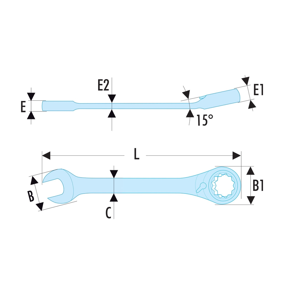 - Type : Clé mixte à cliquet courte
