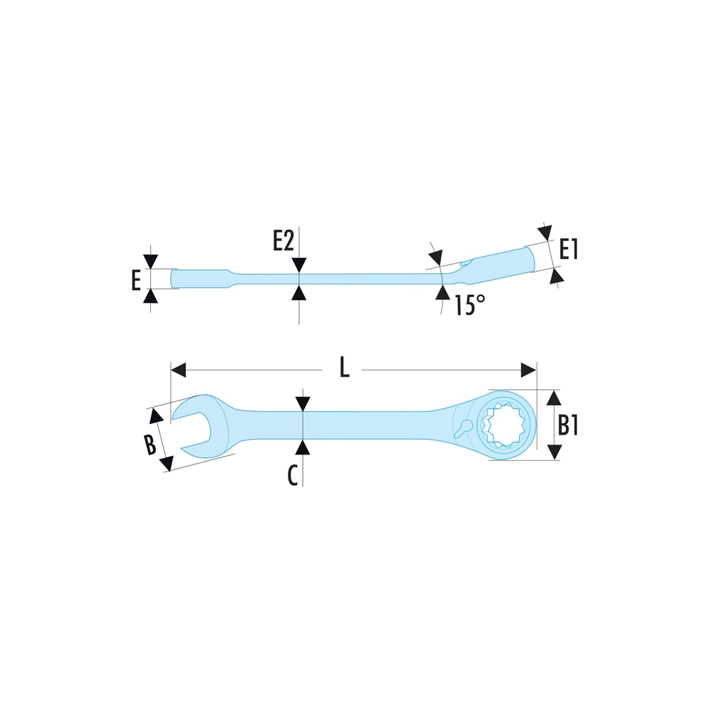 Cette clé mixte à cliquet est conçue pour offrir une efficacité optimale lors de l'utilisation. Son décalage de 15° favorise une meilleure maniabilité, ce qui permet de travailler facilement dans les espaces restreints et d’éviter les obstacles. Grâce à son mécanisme à cliquet compact, l'inversion se fait aisément par levier, garantissant une utilisation rapide et pratique. Avec un angle de reprise de seulement 5°, vous gagnerez en temps et en précision.