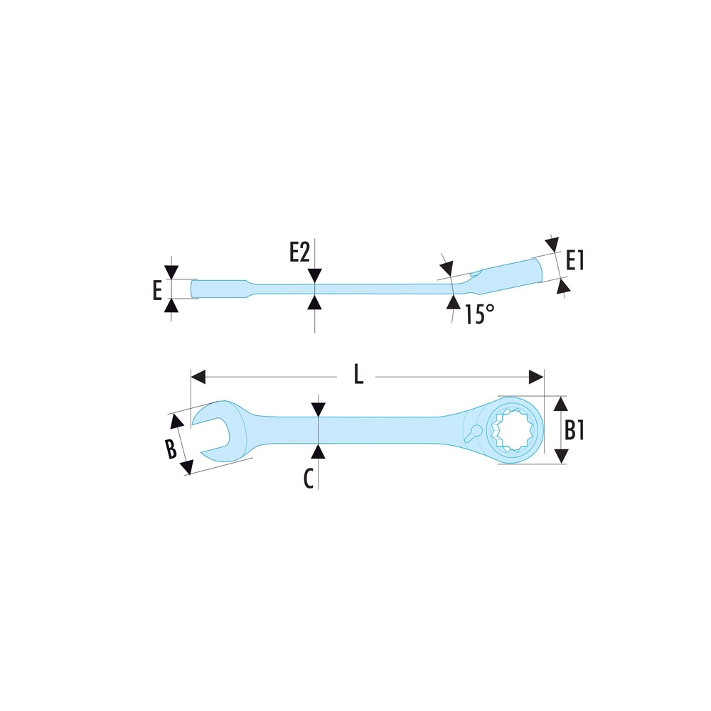 Cette clé mixte est dotée d’un mécanisme à 72 dents, offrant une grande efficacité lors des serrages. Sa conception compacte respecte les normes aéronautiques, garantissant une utilisation sûre et fiable. Grâce à son décalage de 15°, elle permet une meilleure maniabilité, facilitant l'accès aux espaces restreints.