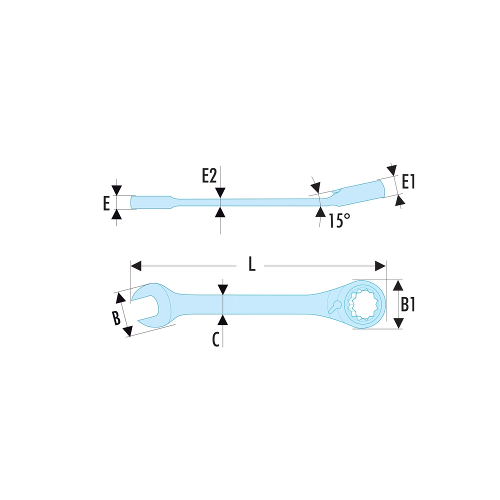 Conçue avec un mécanisme à 72 dents, cette clé offre des performances mécaniques exceptionnelles tout en respectant les normes aéronautiques. Son décalage de 15° permet une manipulation facile, même dans des espaces restreints, évitant ainsi les obstacles lors du serrage. Le profil OGV® assure une maximisation du contact entre la douille et l'écrou ou le boulon, ce qui préserve l'intégrité des fixations.