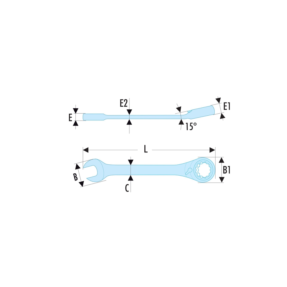 Cette clé est équipée d'un mécanisme à 72 dents qui assure des performances mécaniques élevées, tout en permettant une utilisation confortable et pratique grâce à sa conception compacte. Le décalage de 15° facilite son emploi dans des espaces restreints, rendant le serrage et le desserrage d'écrous et de boulons plus aisés, même dans des conditions difficiles.