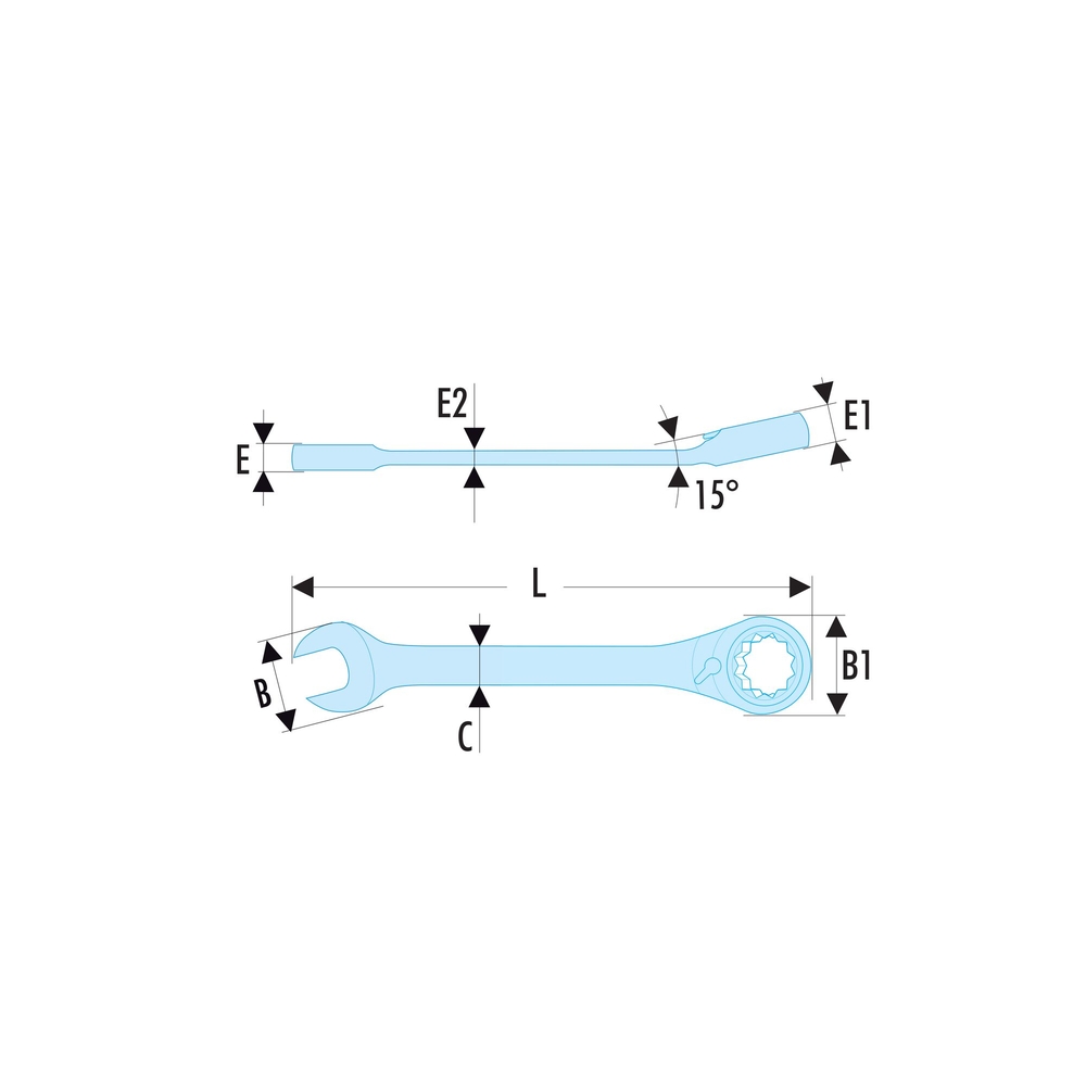 Cette clé dispose d'un mécanisme à 72 dents, garantissant des performances mécaniques élevées tout en restant compacte et conforme aux normes aéronautiques. Son profil OGV® maximiser le contact entre la douille et l'écrou, permettant ainsi de préserver les fixations. De plus, à l'extrémité de la bague, elle bloque l'écrou pour un serrage plus efficace. Avec un décalage de 15°, cet outil facilite la maniabilité et permet d’accéder à des endroits plus difficiles.