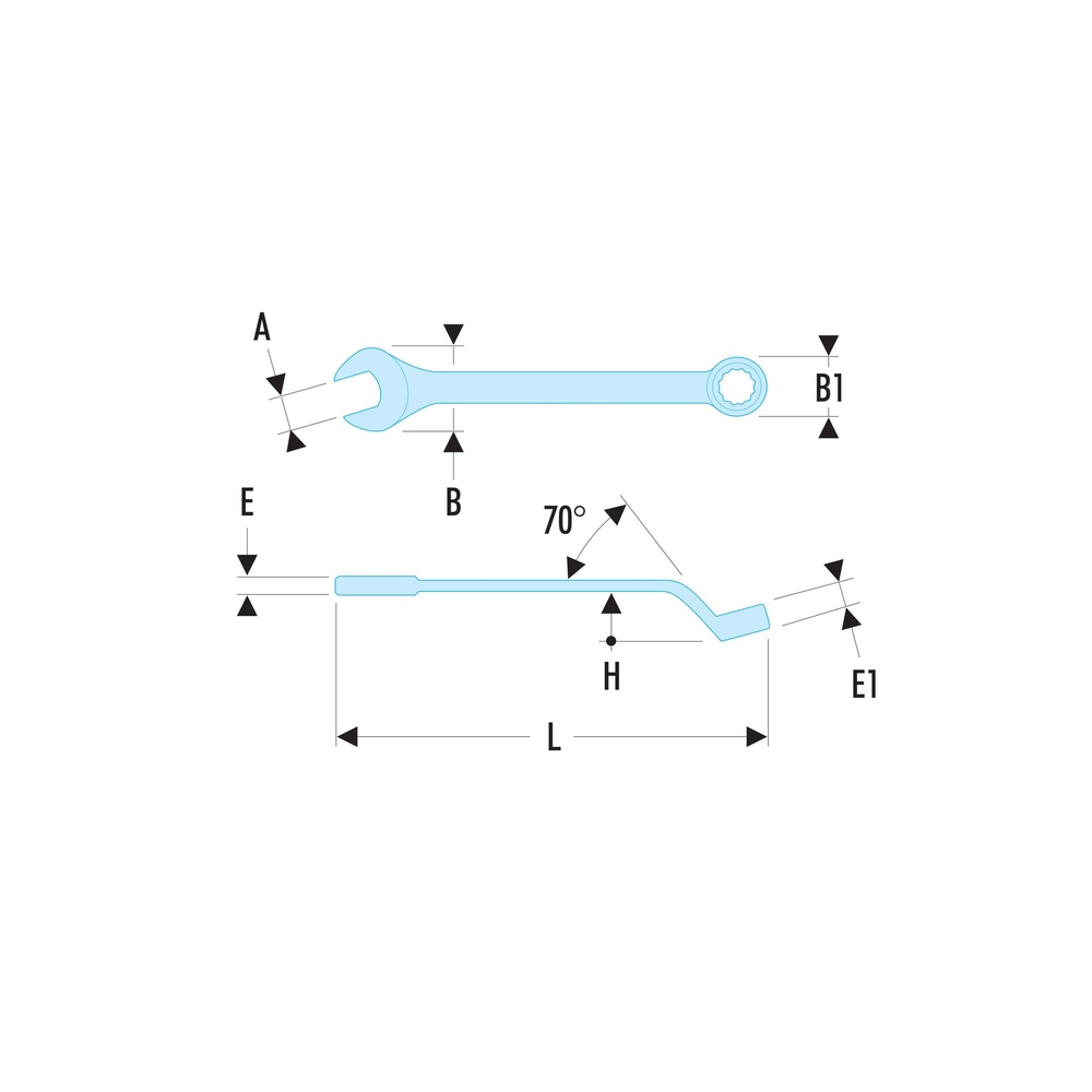 La clé dispose d'une dimension métrique de 14 mm et est compatible avec des tailles allant de 6 à 32 mm. Sa conception ergonomique assure une meilleure maniabilité tout en minimisant les contraintes sur l'utilisateur. Robuste et efficace, elle est un incontournable pour tous vos travaux de mécanique et d'assemblage.