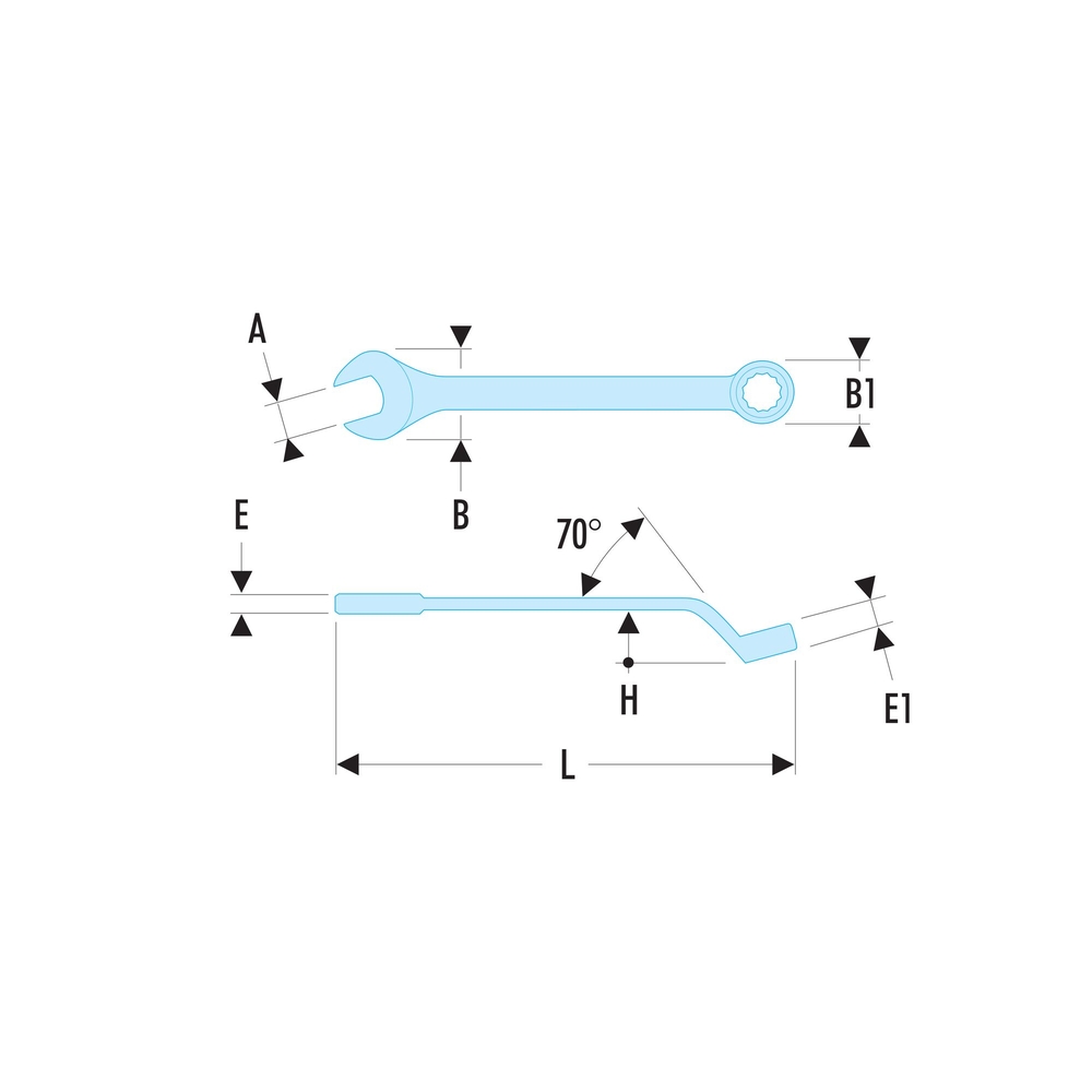 Cette clé est conçue pour offrir une meilleure maniabilité, permettant de contourner les obstacles lors des interventions. Grâce à sa conception contrecoudée et son inclinaison de 15°, elle facilite l'accès aux fixations difficiles.