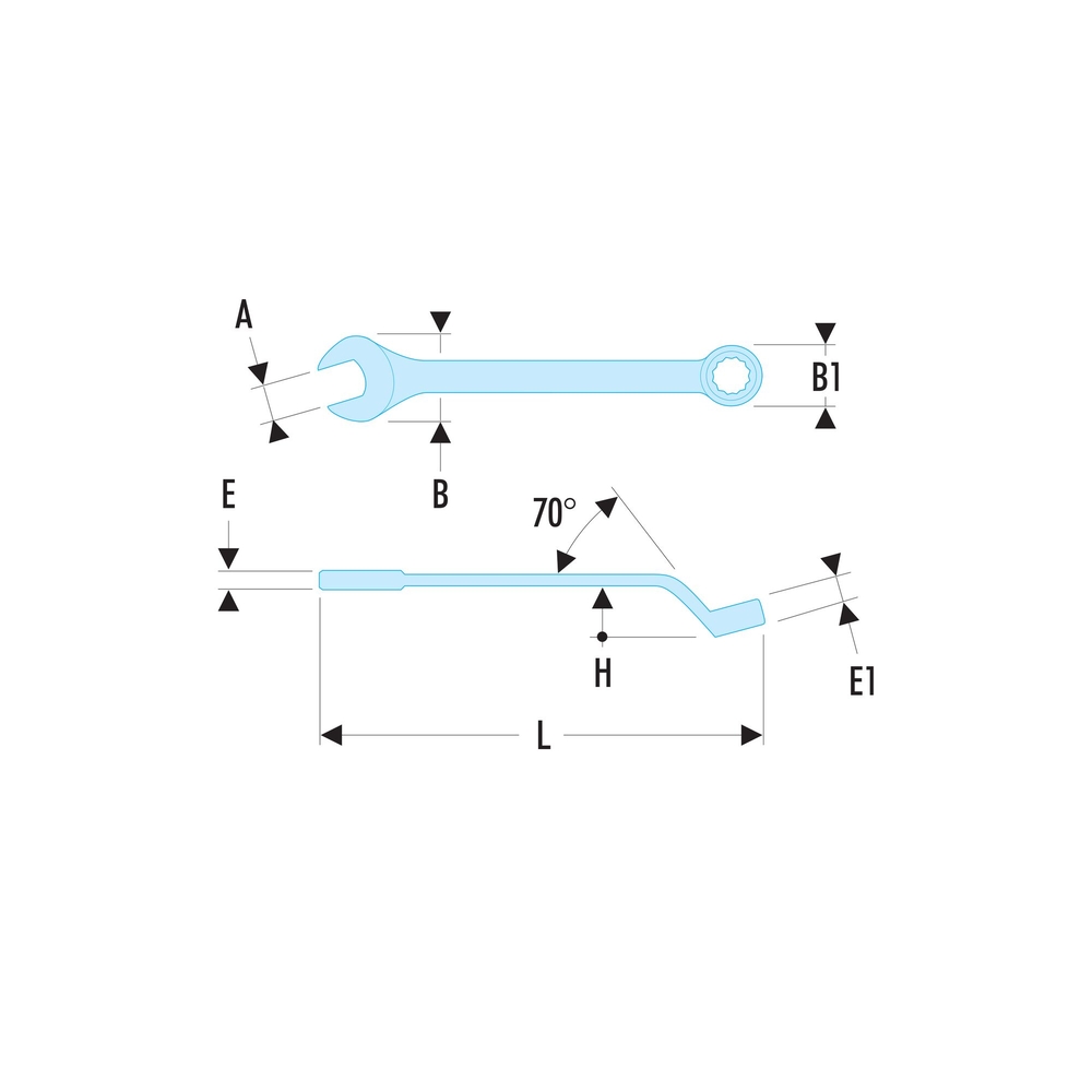 Conçue pour offrir une excellente maniabilité, cette clé permet de naviguer facilement autour des obstacles, facilitant ainsi son utilisation dans des espaces restreints. Grâce à sa fourche inclinée à 15°, elle permet un accès optimal aux fixations tout en assurant une prise solide.
