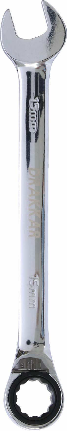 Cle mixte coudee cliquet 15mm 72 dents dt /carte DRAKKAR TOOLS - 12683