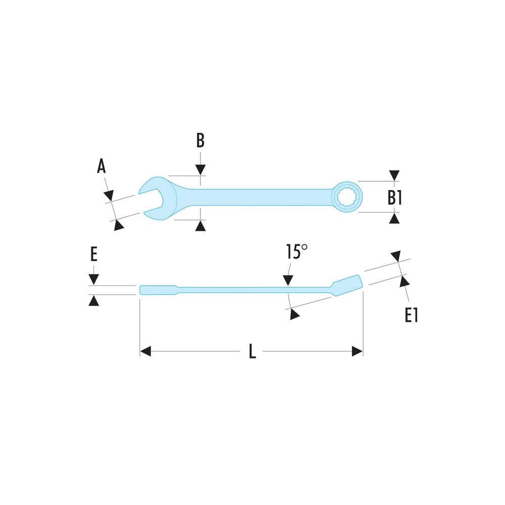 Les dimensions de la clé varient de 3,2 à 17 mm en métrique, et de 3/16" à 11/16" en pouces, offrant ainsi une flexibilité d'utilisation pour divers travaux de mécanique. Adoptez cette clé mixte pour une performance accrue et une durabilité à toute épreuve.