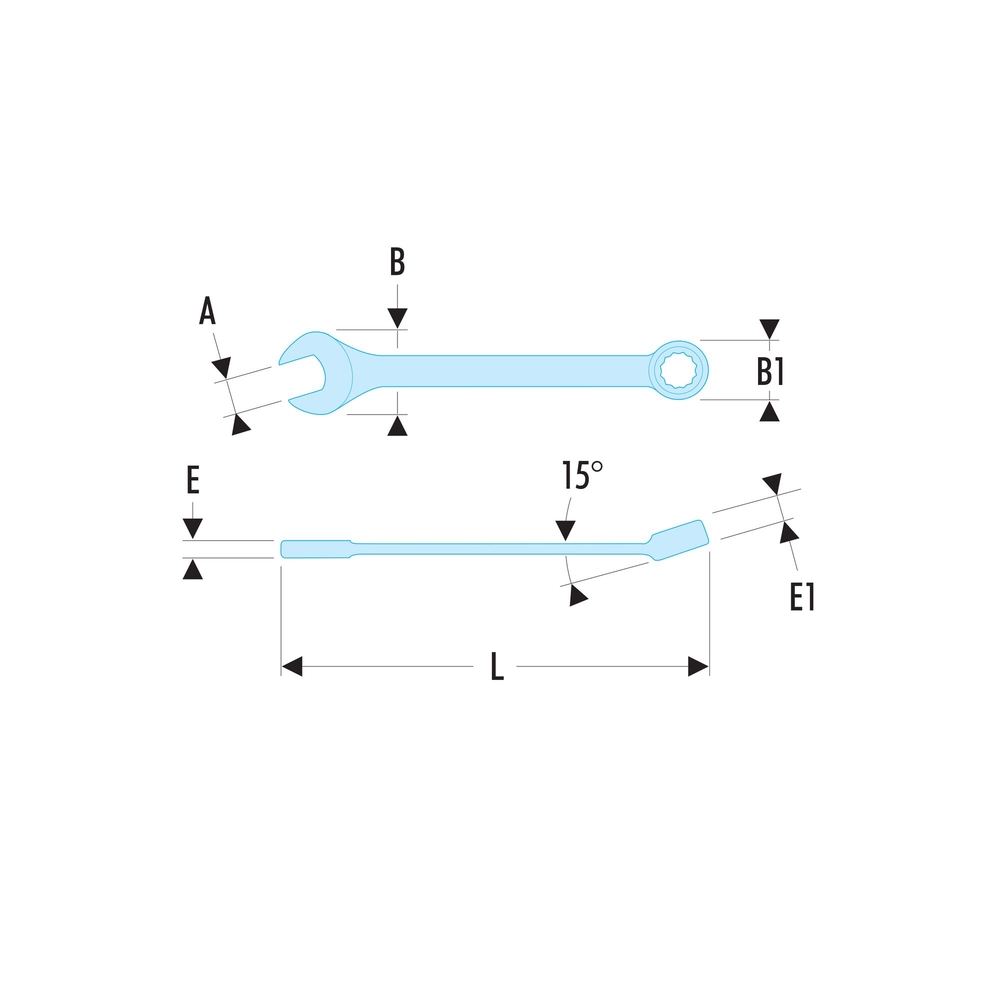 Les dimensions de cette clé vont de 3,2 mm à 17 mm en valeurs métriques, et de 3/16" à 11/16" en pouces, offrant une grande polyvalence pour divers travaux. Choisissez cette clé mixte pour allier efficacité et confort dans vos interventions techniques.
